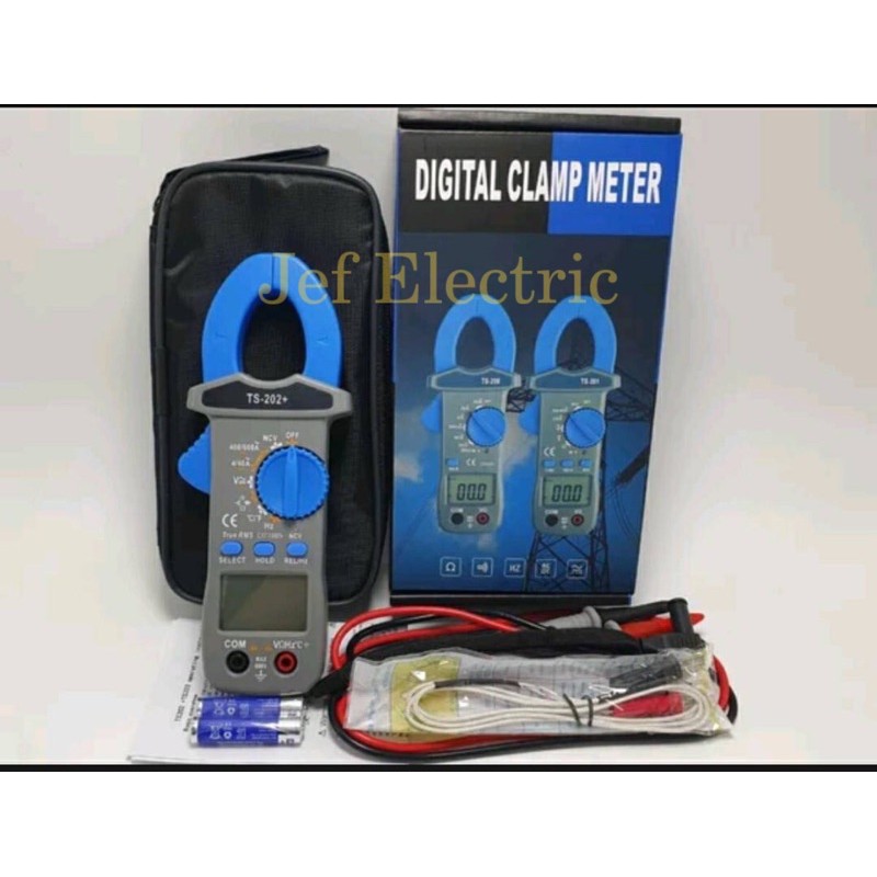 clamp digital TS-202 + ( BRAND NEW )Tang amper multimeter ini Bisa di gunakan untuk mengukur : ACA : 4A / 40A / 400A / 600AACV : 4V / 40V / 400V / 600VDCV. : 400mV / 4V / 40V / 400V / 600VHZ : 10 Hz - 10 MHzCX. : 1OnF - 100mF Celcius : - 20°C - 1000 °C ( kabel putih)NCV : untuk ukur kabel putusnb : True RMS ( lebih akurat )barang sesui