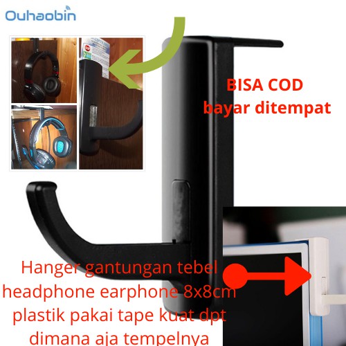 Hanger gantungan tebel headphone earphone 8x8cm plastik pakai tape kuat dpt dimana aja tempelnyaHanger untuk menggantungkan headphone headset dengan design yang kuat simple dan elegant karena di pasangnya menggunakan double tape (sudah include) maka dapat anda letakkan dimana saja seperti pinggi meja kerja anda di monitor anda